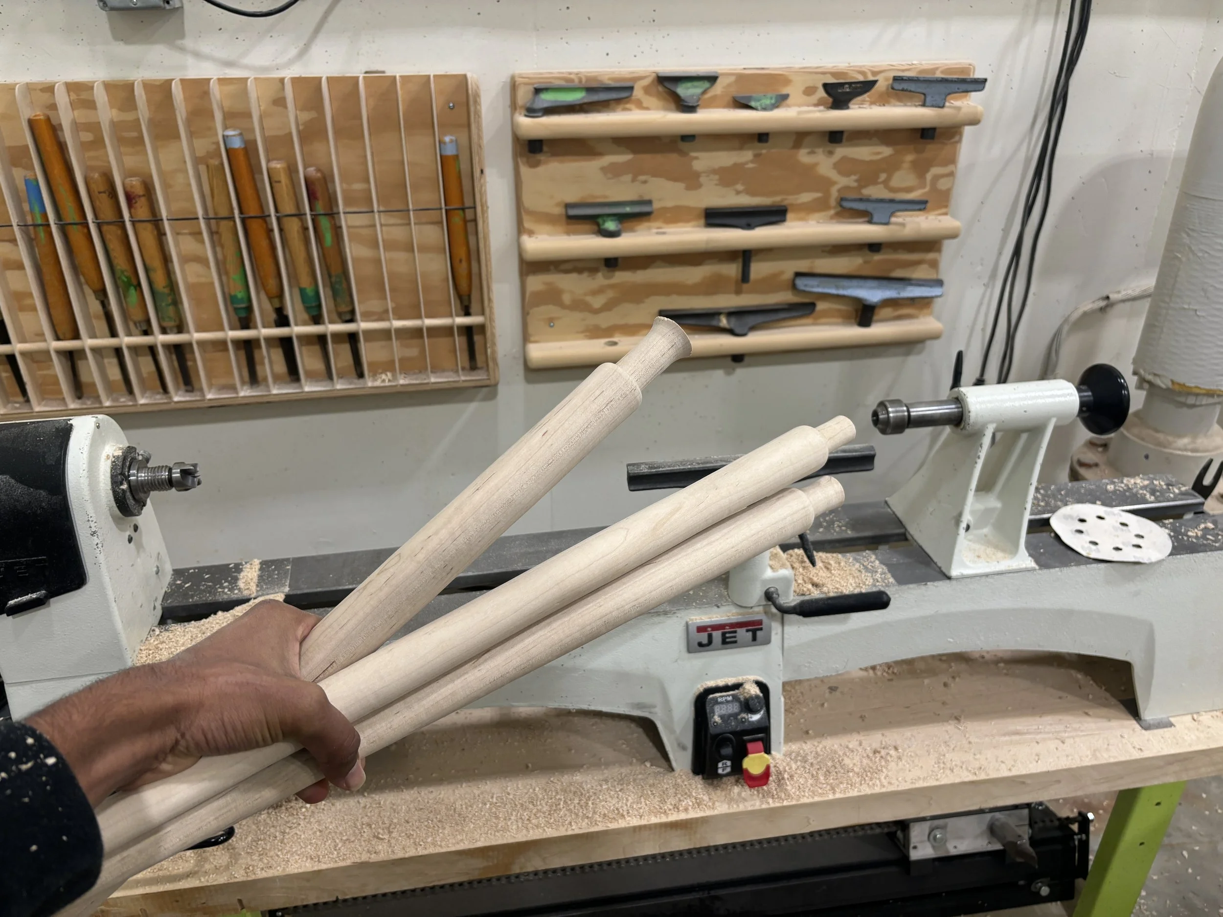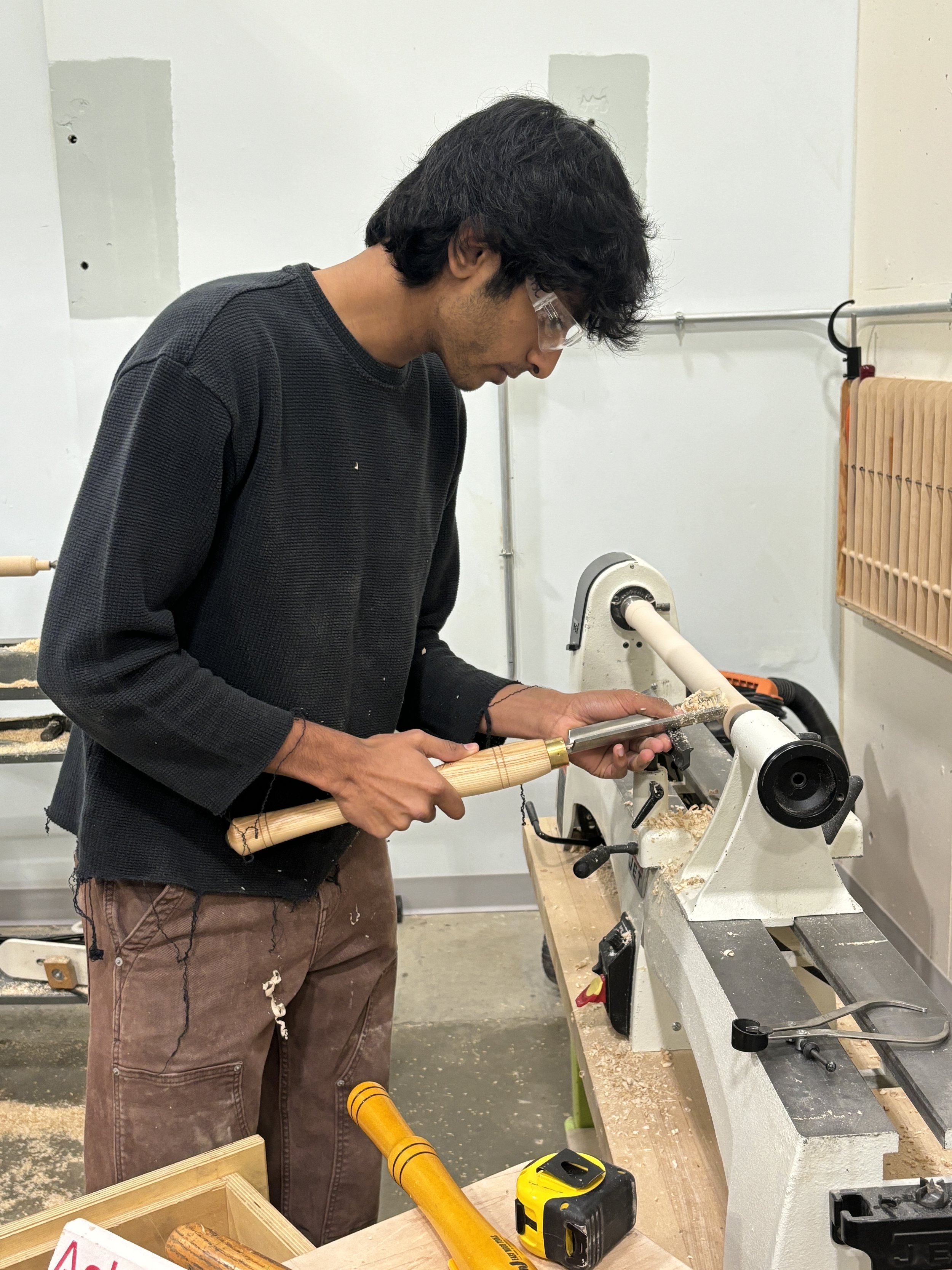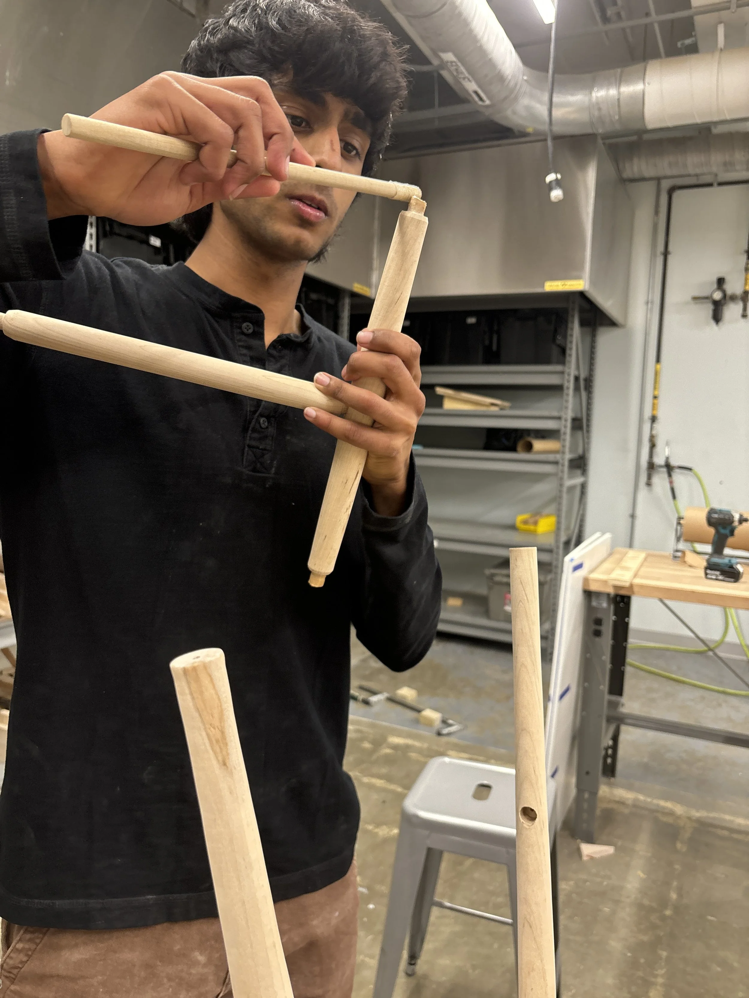 Initially, I was not precise enough on the lathe with my tenons, causing a loose fit, forcing me to redo all three of my legs on the lathe.