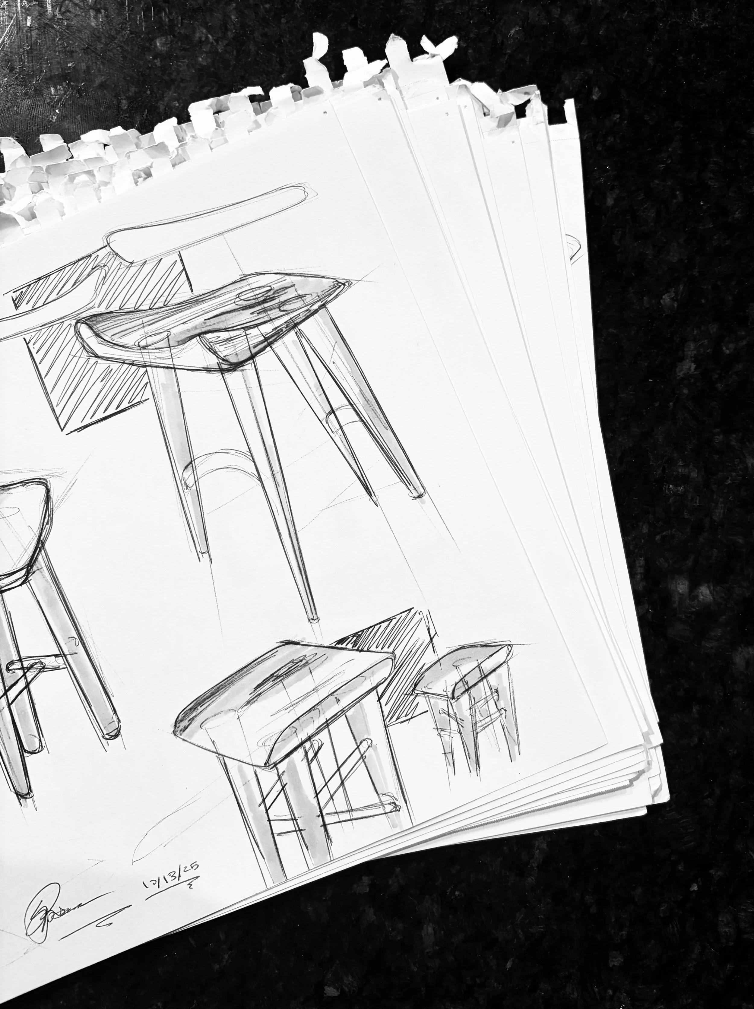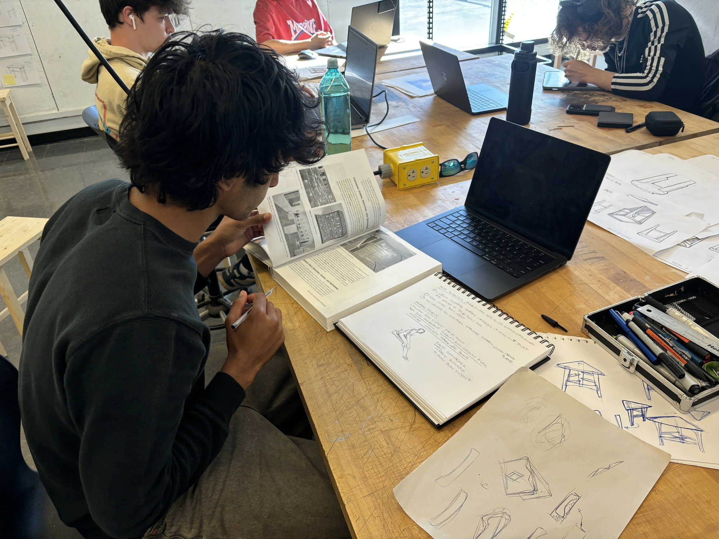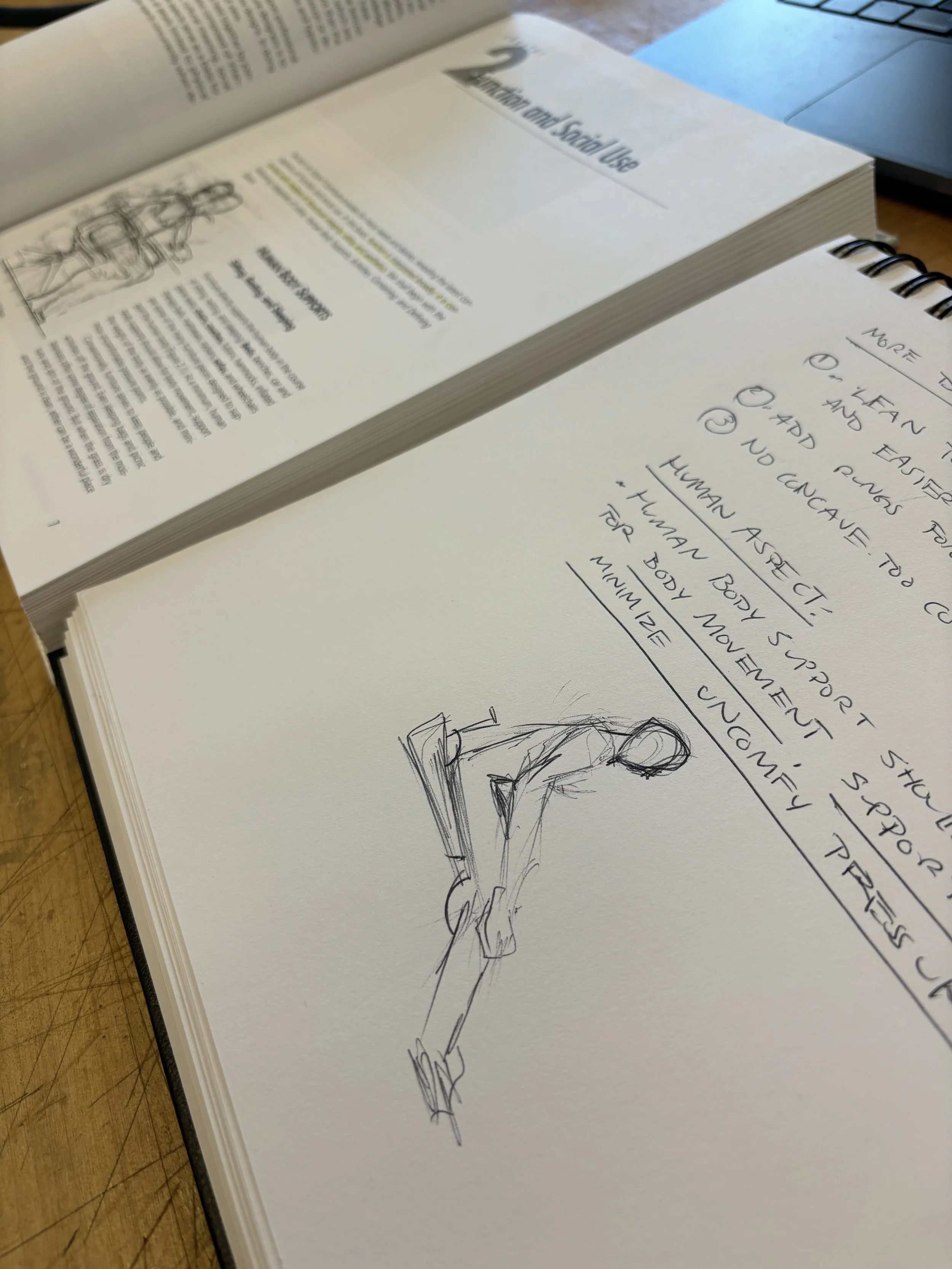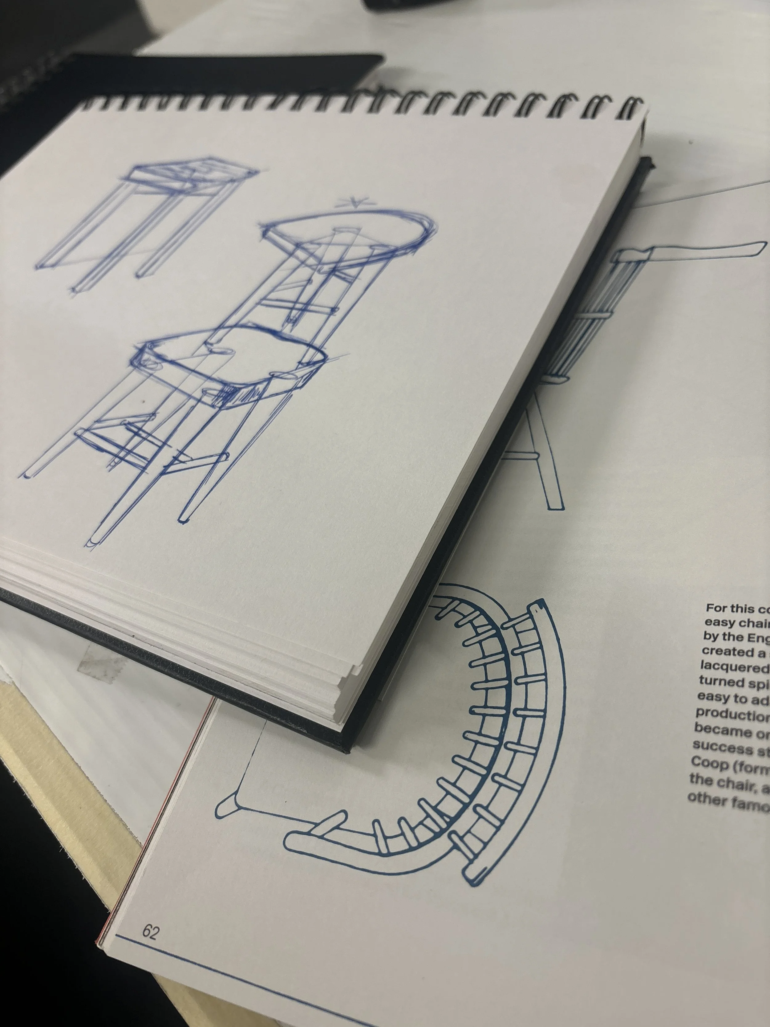 Research included exploring design philosophies, form exploration, and observing human interactions with furniture.