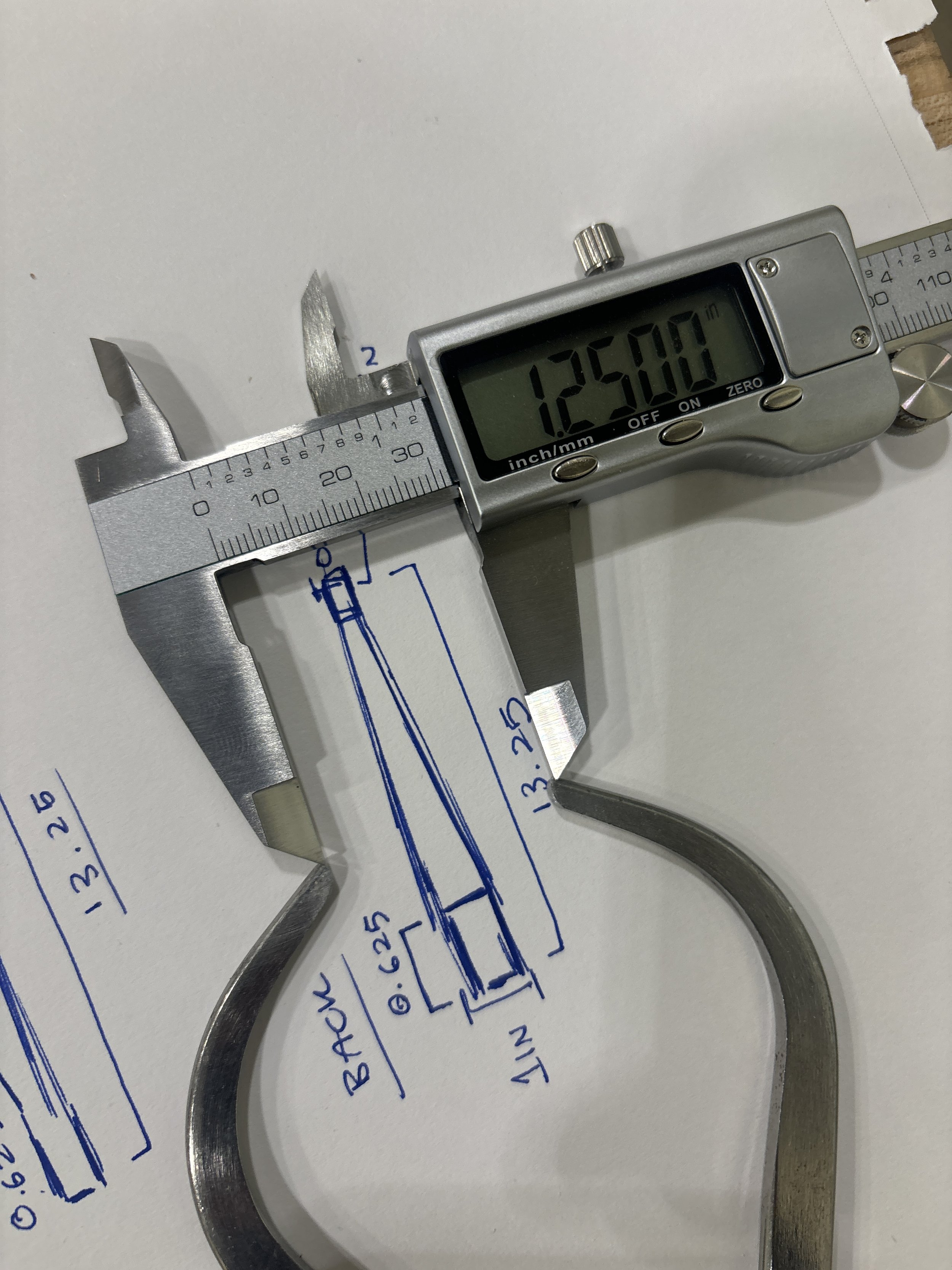 Caliper measurement to ensure tight tenon fit for rungs and legs.